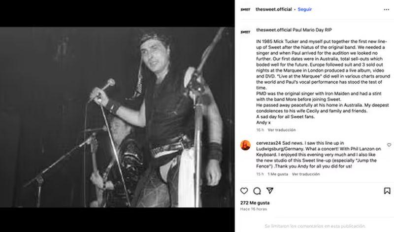 El mensaje cerró con la frase: “Un día triste para todos los fans de Sweet”, reflejando la conmoción entre los seguidores de varias generaciones. Según el anuncio, Paul Mario Day murió en Australia tras una larga lucha contra el cáncer.