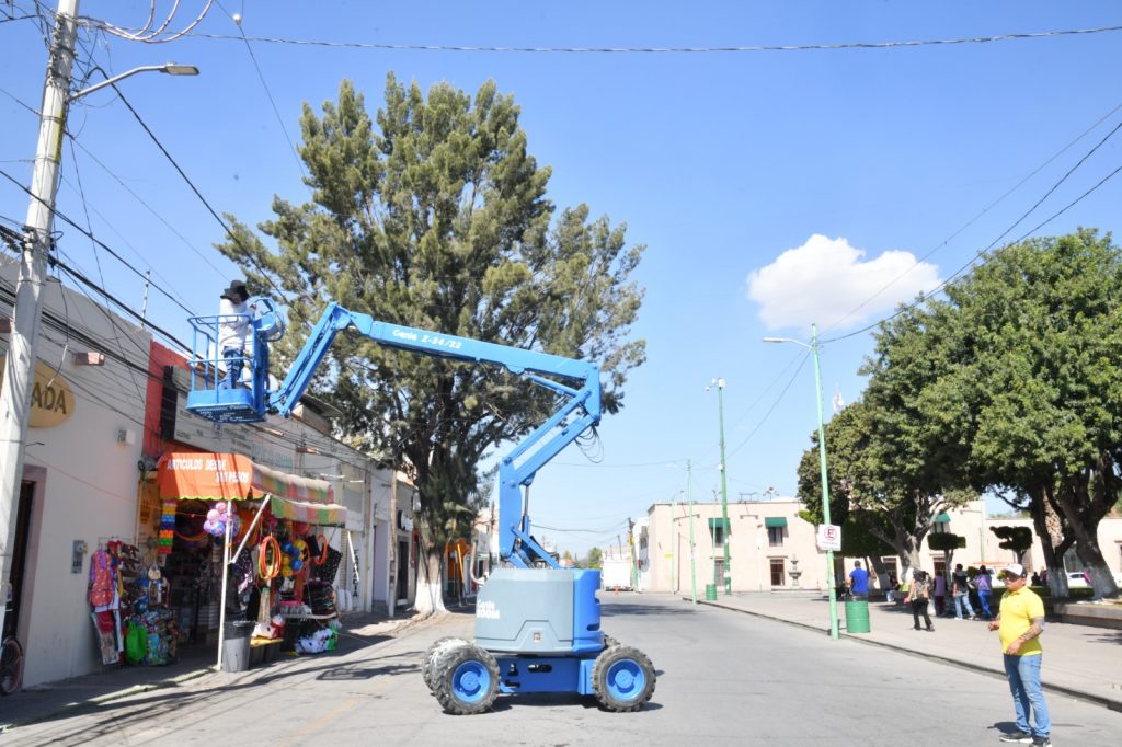 El área de Alumbrado Público inicia la instalación de luces y adornos que transformarán el primer cuadro en un espacio de ilusión y alegría para las familias.