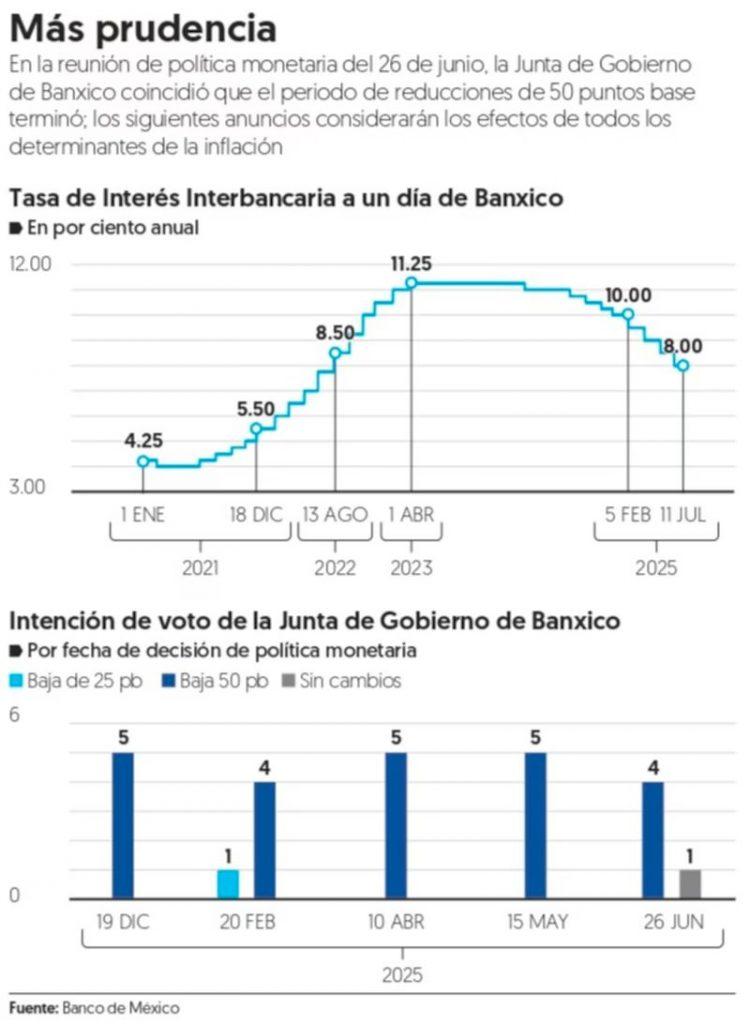 Analistas de Banamex argumentaron que la debilidad económica, el desvanecimiento de choques de precios y la depreciación del dólar, permitirán que la postura monetaria esté cerca del terreno neutral. Ven tres recortes continuos de 25 puntos base para que la tasa cierre el año en 7.25 por ciento.