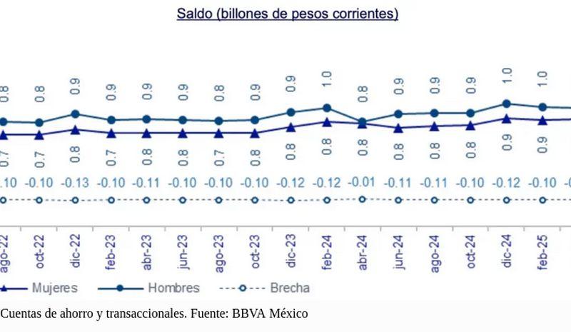 Aunque las mujeres en México tienen registradas más cuentas de ahorro y transaccionales que los hombres, los varones concentran un mayor volumen de saldo, con una diferencia aproximada de 0.1 billones de pesos corrientes a su favor al mes de abril, de acuerdo con un reporte del grupo financiero BBVA México.