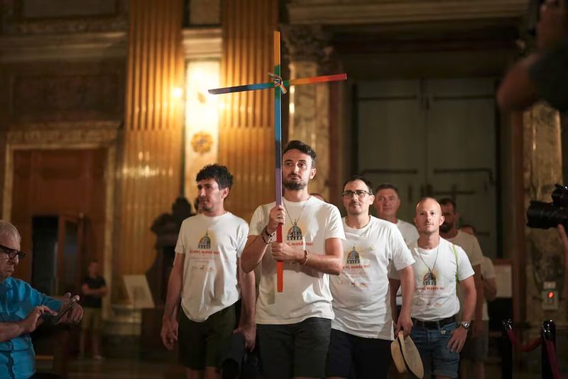 Y como cualquier grupo de peregrinos, las asociaciones que representan a los colectivos homosexuales católicos, transgéneros y padres de hijos LGBTQI+, las cerca de 1.300 personas que se inscribieron, llegadas de todo el mundo, atravesaron la Puerta Santa precedidos por su cruz arcoíris.
