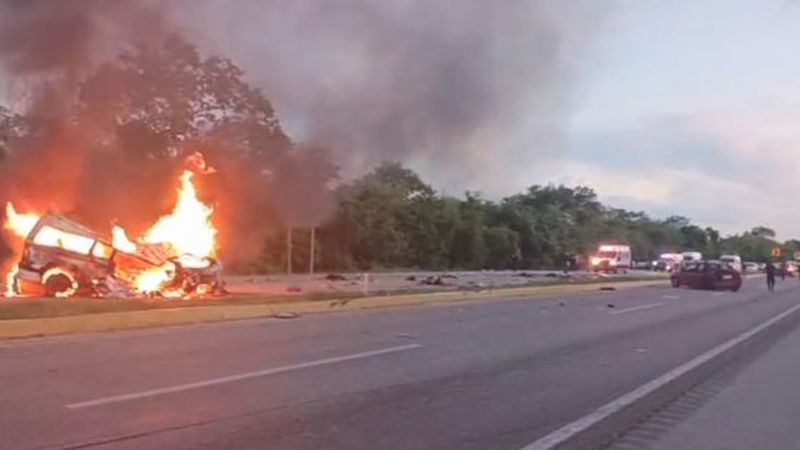 Choque entre un tráiler, un auto particular y un taxi deja 15 muertos en Yucatán