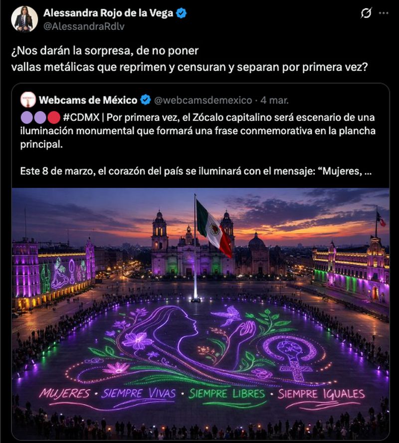 La alcaldesa de Cuauhtémoc, Alessandra Rojo de la Vega, afirmó que las vallas son parte de una estrategia de represión, censura y separación.