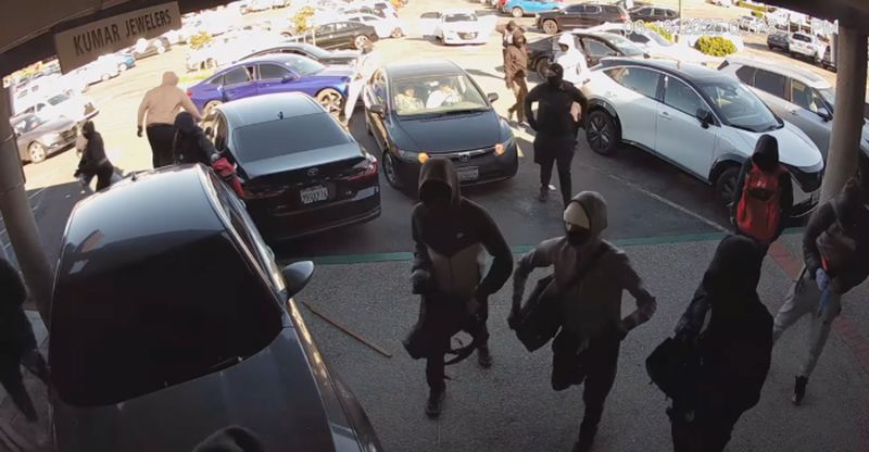 En tan solo 70 segundos, una banda de al menos 20 hombres robaron 1.7 millones de dólares en joyas en Fremont, al norte de California.