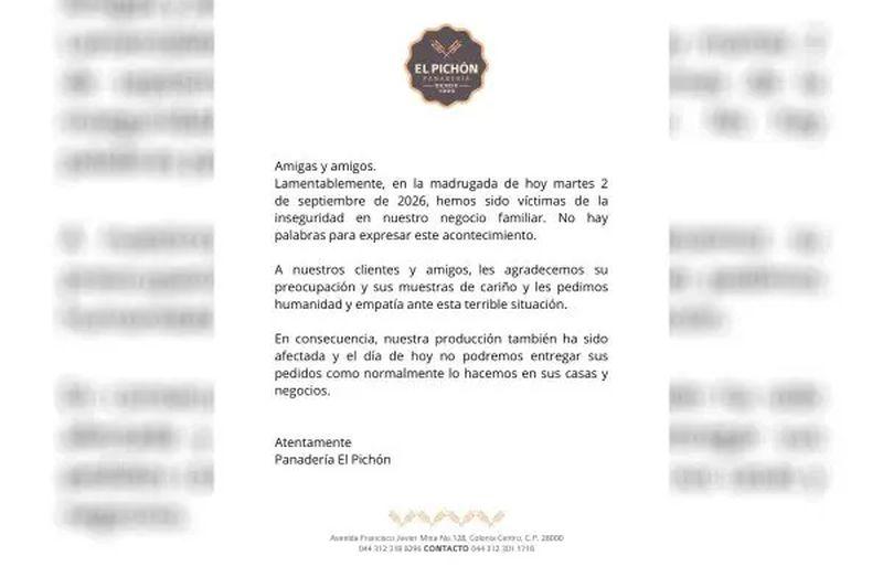 En redes sociales, la panadería El Pichón informó sobre lo ocurrido: “Hemos sido víctimas de la inseguridad en nuestro negocio familiar. No hay palabras para expresar este acontecimiento”.