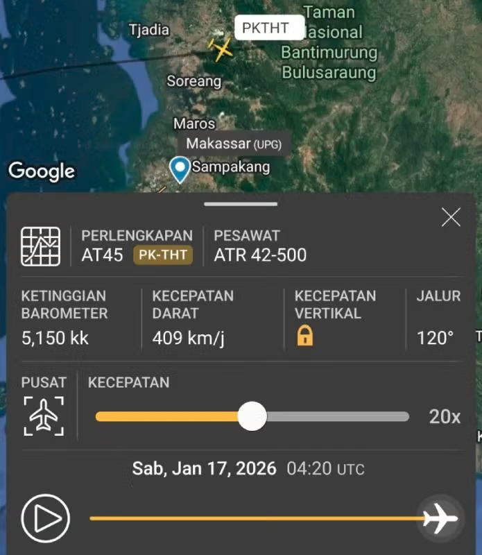 Se trata de un ATR 42-500 de turbohélice operado por Indonesia Air Transport, que cubría la ruta entre Yogyakarta y la ciudad capital de Sulawesi del Sur. El contacto con la torre de control se perdió a la 01:17 de la tarde (hora local) cerca de Leang-Leang, en la provincia de Sulawesi del Sur.
