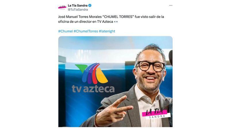 “José Manuel Torres Morales “CHUMEL TORRES” fue visto salir de la oficina de un director en TV Azteca”, se lee.
