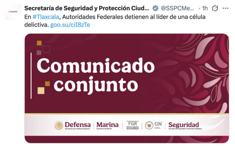 De acuerdo con fuentes oficiales, miembros de las Secretarías de Marina, Seguridad y Protección Ciudadana (SSPC) y la Fiscalía General de la República (FGR), arrestaron a alias El Hacha, en el municipio de Santa Cruz, Tlaxcala, y decomisaron “dosis de droga y una granada”.