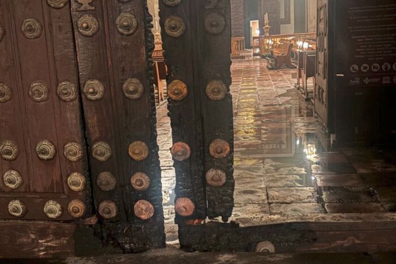 La Arquidiócesis de Puebla denunció que dos hombres provocaron un incendio en una de las puertas de la Catedral de Puebla durante la madrugada de este sábado.
