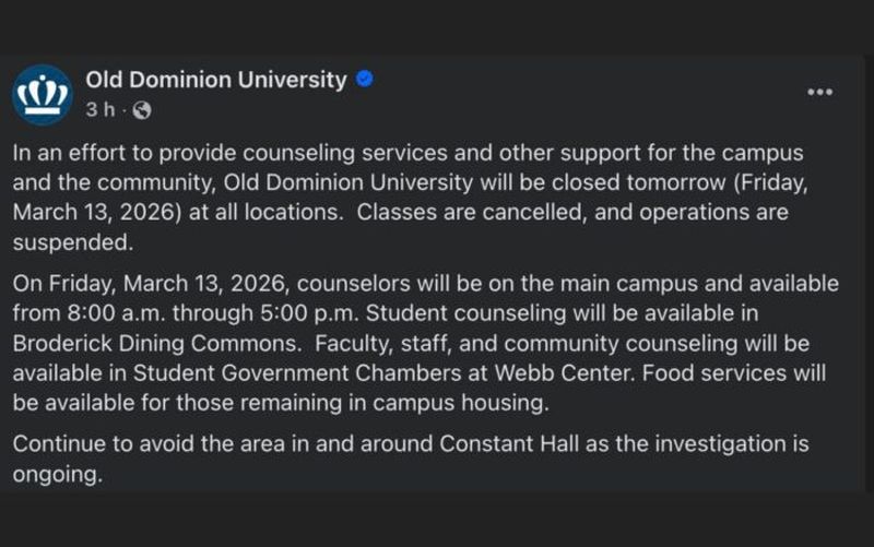 Las víctimas del ataque, cuya identidad no ha sido revelada, estaban afiliadas a la universidad. De acuerdo con el jefe Shelton, dos de los heridos fueron trasladados al Hospital General de Norfolk, mientras que un tercero se desplazó por sus propios medios a un centro médico en Virginia Beach. Ante la gravedad de los hechos, el presidente de la Universidad Old Dominion, Brian Hemphill, anunció la cancelación de todas las actividades académicas y operativas.