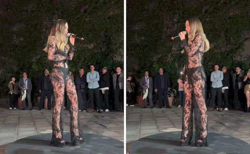 En la fiesta de lanzamiento, Belinda lució espectacular con un look transparente, una de las tendencias más fuertes de 2025.