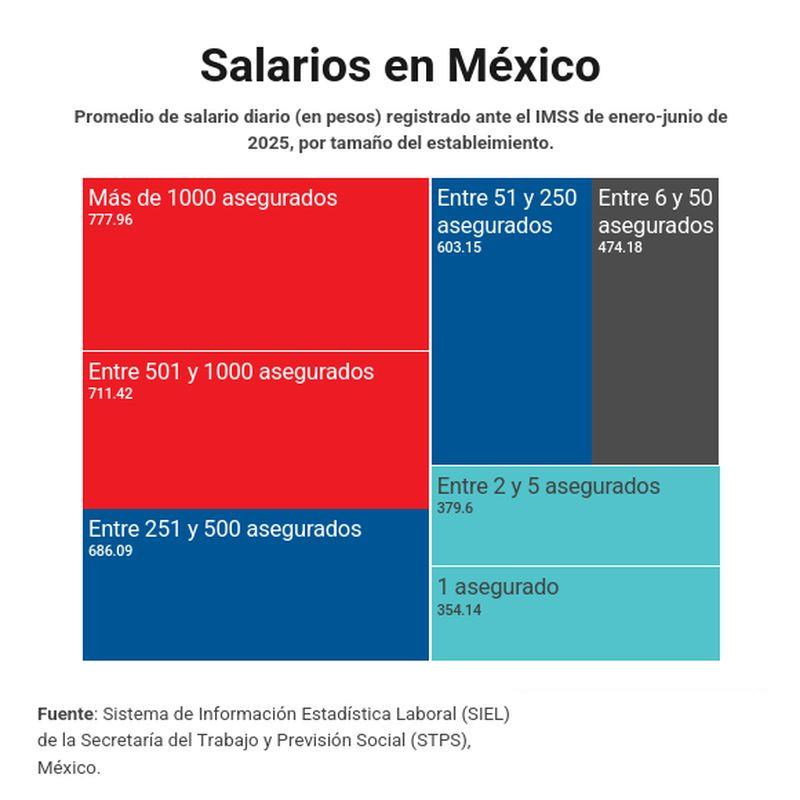 Esta cifra oficial del Sistema de Información Estadística Laboral (SIEL) de la STPS cuenta con datos proporcionados por los trabajadores registrados en el IMSS, y los salarios son el promedio de los registrados al último mes de evaluación.