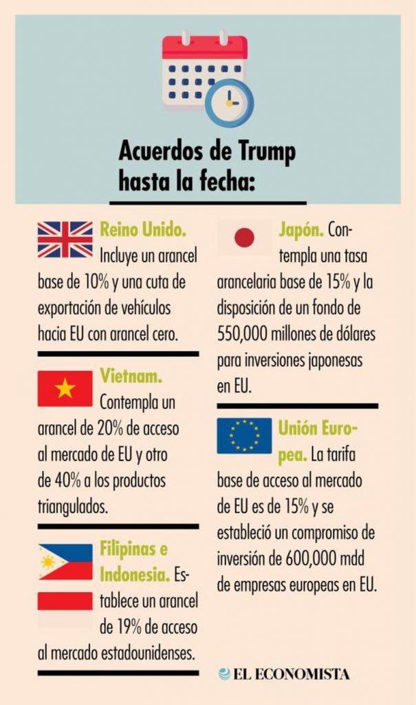 El acuerdo con la UE ocurre tras una oleada de anuncios comerciales, luego de que Trump anunciara la semana pasada que había llegado a un acuerdo con Japón, con una tasa arancelaria base también de 15 por ciento.