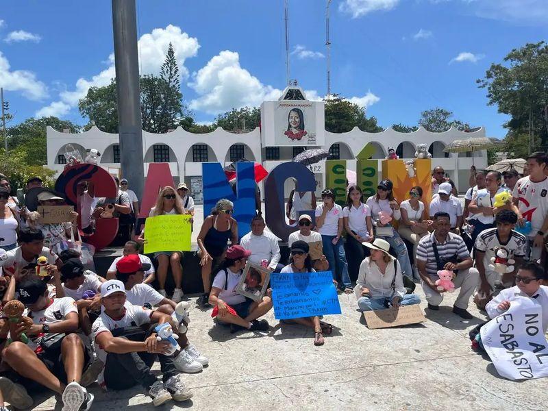 Alrededor de medio centenar de personas, incluidos niños, se concentraron en la glorieta que se ubica en el cruce de las avenidas Tulum y Coba, popularmente conocida como Glorieta del Cebiche: