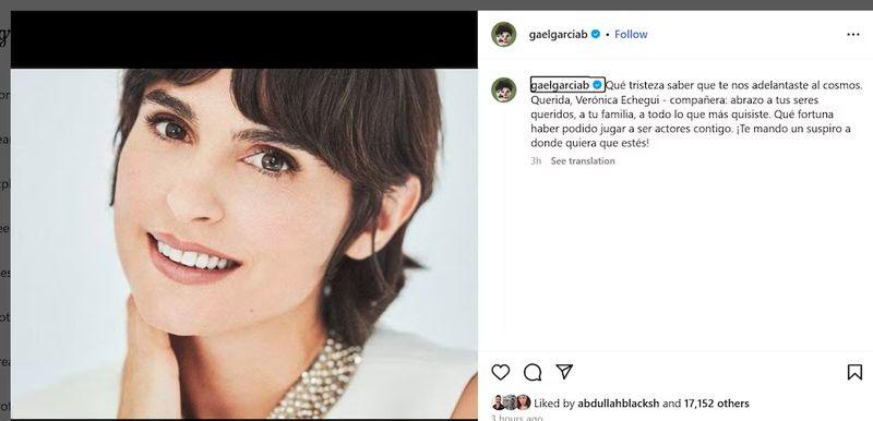 “Qué tristeza saber que te nos adelantaste al cosmos, querida, Verónica Echegui -compañera-, abrazo a tus seres queridos, a tu familia, a todo lo que más quisiste, qué fortuna a haber jugado a ser actores contigo, te mando un suspiro a donde quiera que estés”.