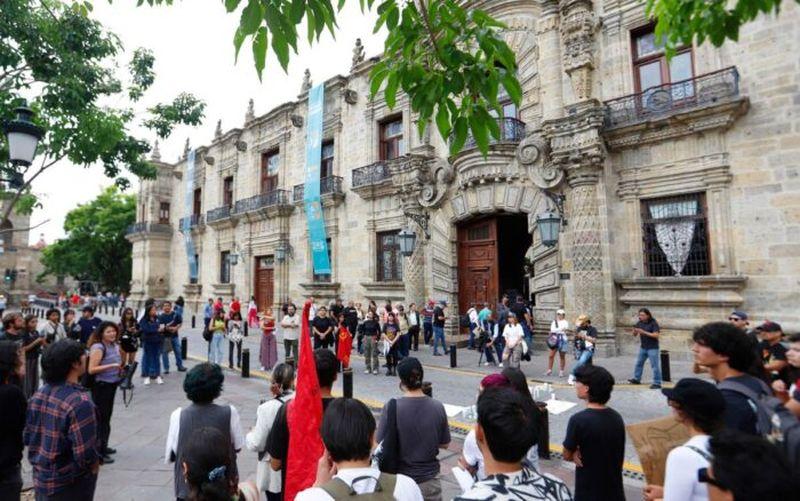 Durante la protesta, las y los manifestantes colocaron velas, carteles y fotografías de personas desaparecidas en la entrada del Palacio de Gobierno de Jalisco. También corearon consignas exigiendo mayor seguridad para quienes transitan en los alrededores del campus, una zona con escasa vigilancia y con pocas opciones de transporte.