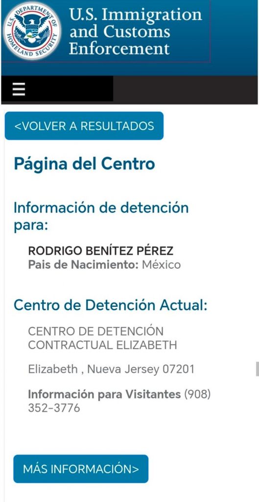 De acuerdo con información del ICE, el exfuncionario permanece recluido en el Centro de Detención Contractual Elizabeth, en la ciudad de Elizabeth, Nueva Jersey.