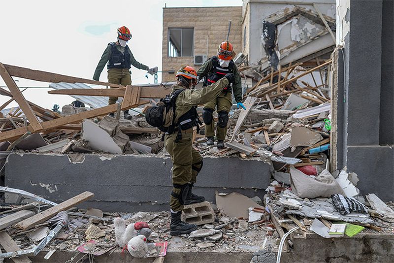 El misil, indican los sanitarios, impactó de lleno en un edificio residencial que terminó completamente derrumbado. Decenas de ambulancias se trasladaron al lugar, acompañando a equipos de rescate que buscan a más gente bajo los escombros.