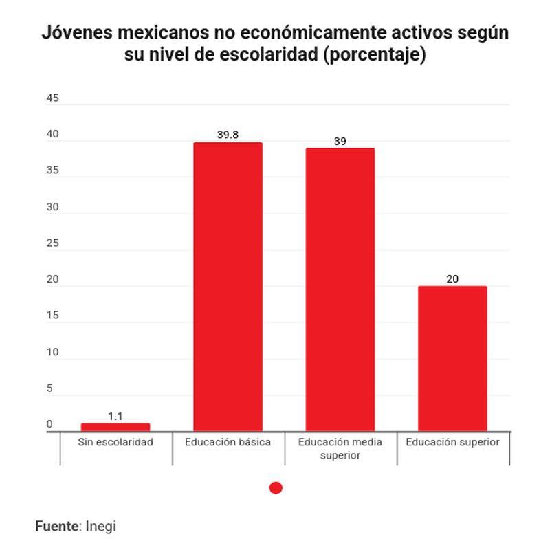 5. La mayoría de la población joven económicamente no activa cuenta con estudios de secundaria y educación media superior.