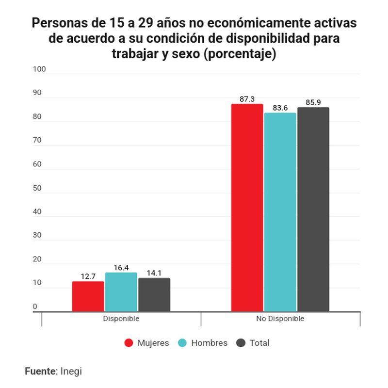 7. De estos mexicanos jóvenes que no están disponibles para trabajar, casi el 70% de las mujeres dice estar soltera, situación similar para el 98% de los varones.