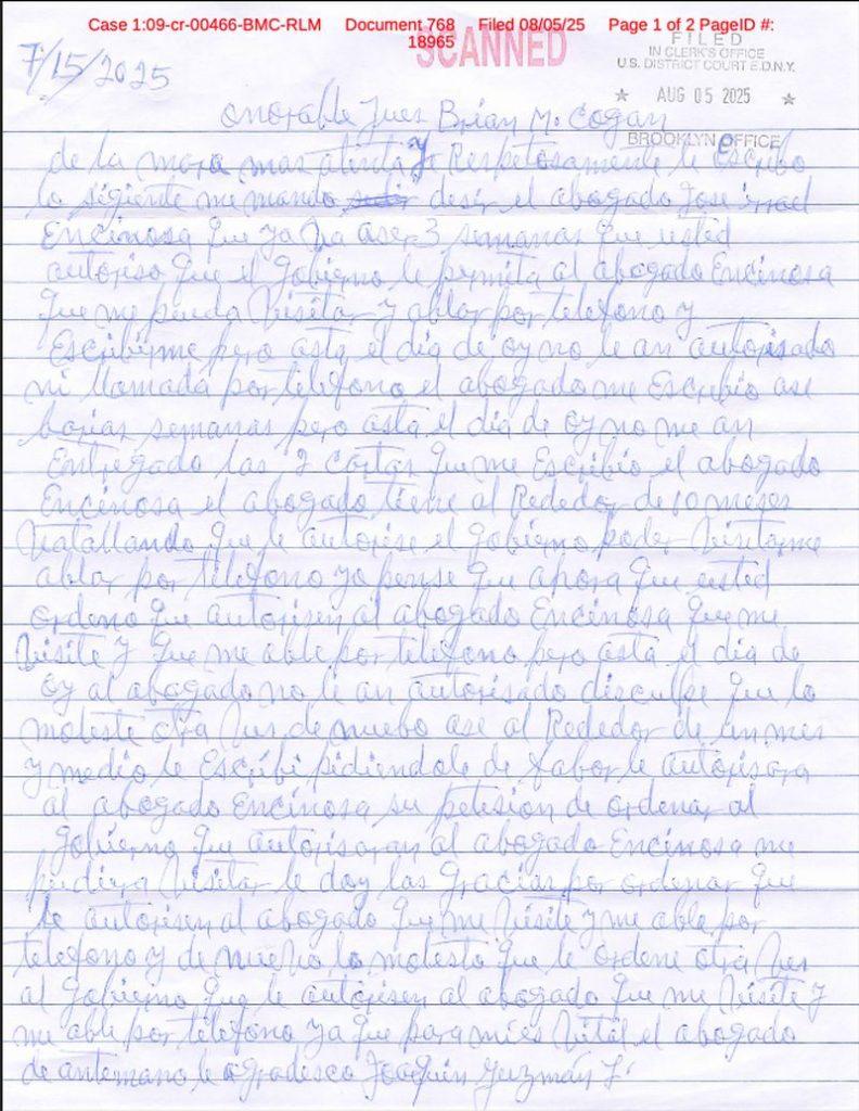 Joaquín “El Chapo” Guzmán Loera envió una carta escrita a mano al juez Brian Cogan.