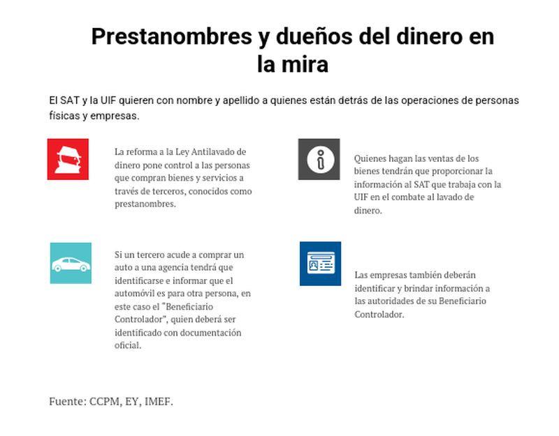 La reforma a la Ley Antilavado de dinero pone control a las personas que compran bienes y servicios a través de terceros, conocidos como prestanombres.