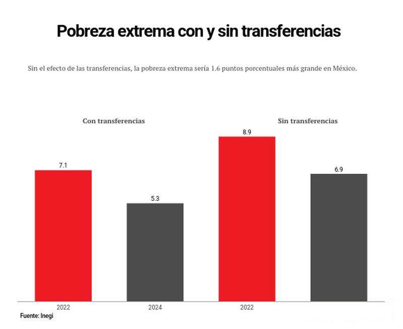 En términos absolutos, las transferencias evitaron que 4.2 millones de personas cayeran en pobreza. En la pobreza extrema, el efecto fue de 5.3% con apoyos a 6.9% sin ellos, es decir, dos millones de personas más en situación crítica.