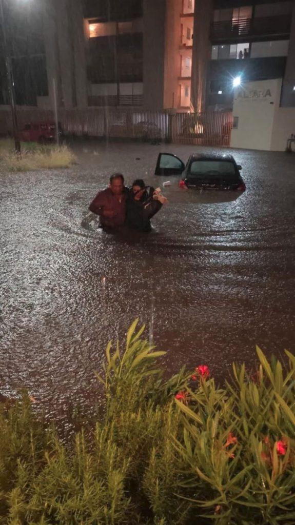 Según reportes de autoridades, el agua alcanzó casi un metro de altura, cubriendo la mitad de sus cuerpos. Esto ocurrió en Valle de Juriquilla, en la capital de Querétaro.