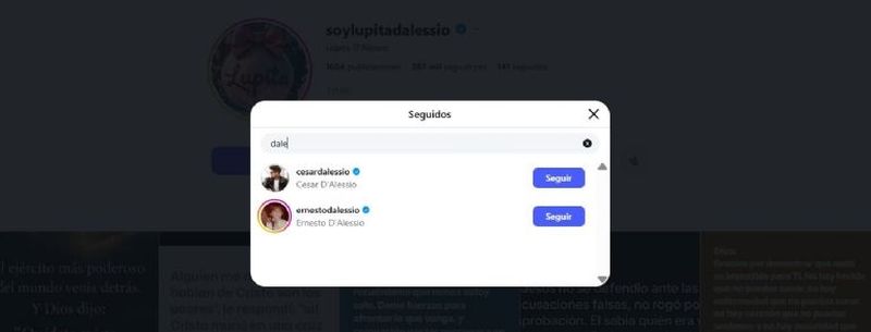 Resulta que los internautas se percataron que «La Leona Dormida» solo sigue en Instagram a dos de sus hijos, César y Ernesto D’Alessio. Al único que no sigue en esa plataforma digital es a Jorge D’Alessio, quien actualmente está en el ojo del huracán.