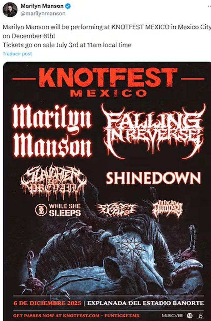 El KnotFest México está de regreso tras seis años de ausencia, y lo hace con una sorpresa inesperada: Marilyn Manson encabezará el cartel de la edición 2025. El ícono del metal lidera esta nueva entrega del festival, que se llevará a cabo en el Estadio Azteca, ahora conocido como Estadio Banorte, el 6 de diciembre.