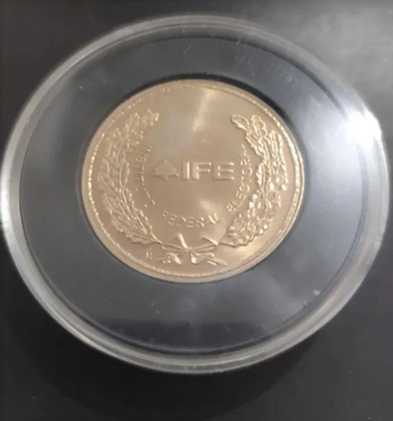 A ver, no es que tenga oro ni plata ni un error de fábrica. Lo que tiene es historia. Esta pieza fue entregada como reconocimiento por haber participado en las elecciones de aquel año, cuando todavía existía el IFE como tal (antes de transformarse en INE).