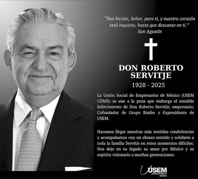 La Unión Social de Empresarios de México (USEM), de la cual Roberto Servitje fue expresidente, publicó una esquela en la que manifestó su solidaridad a la familia.