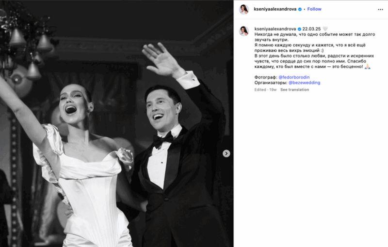“Hubo tanto amor, alegría y sentimientos sinceros en este día que el corazón sigue lleno de ellos. Gracias a todos los que estuvieron con nosotros”, expresó en aquel momento Alexandrova en redes sociales.
