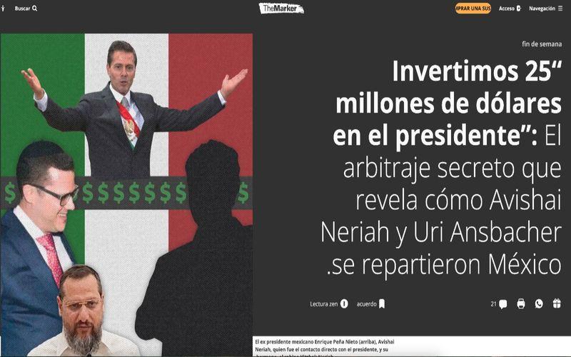 El artículo lleva un título más que sugerente: “Invertimos 25 millones de dólares en el presidente: El arbitraje secreto que revela cómo Avishai Neriah y Uri Ansbacher se repartieron México”.