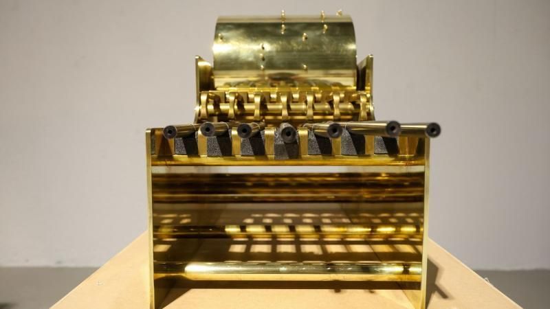 Por ejemplo, una caja realizada con rifles de la marca Beretta toca un fragmento de Vivaldi, mientras que otra, elaborada con cañones de pistolas Glock, reproduce un fragmento de Mozart.