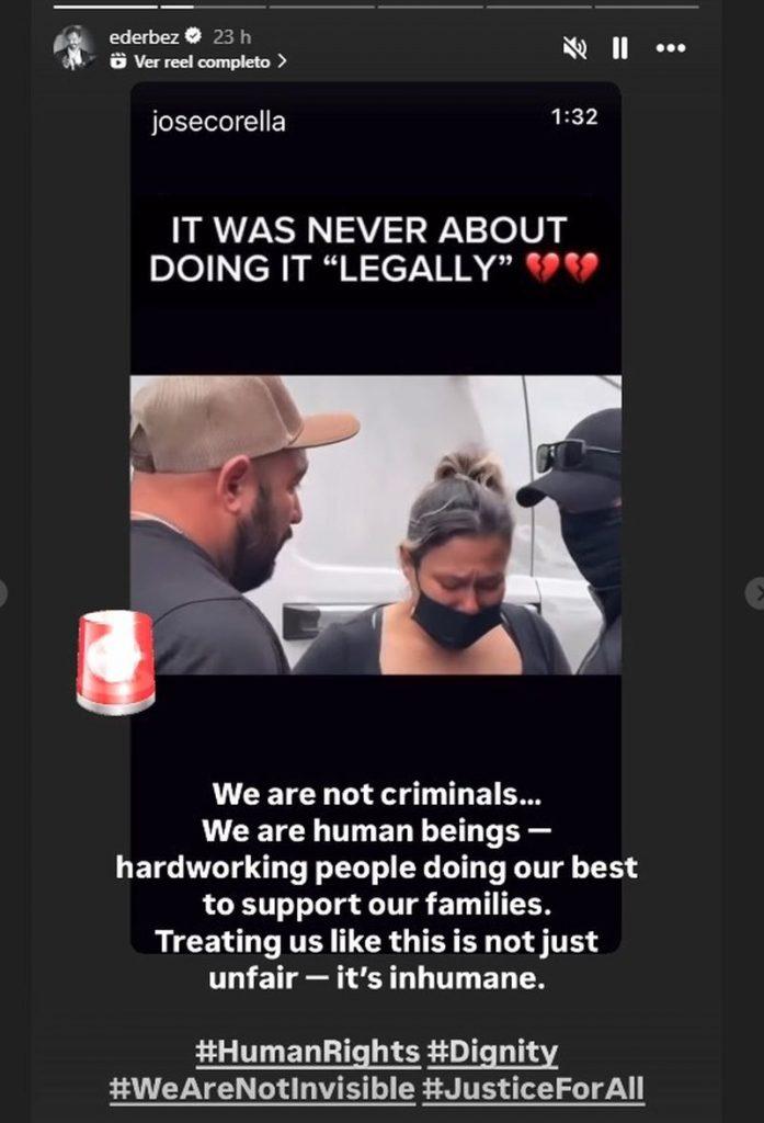 El mexicano dejó en claro en sus redes sociales su apoyo con la frase “no somos criminales”, fue en sus historias de Instagram que publicó videos de residentes, activistas y organizaciones migrantes donde se exponen abusos cometidos en las redadas.