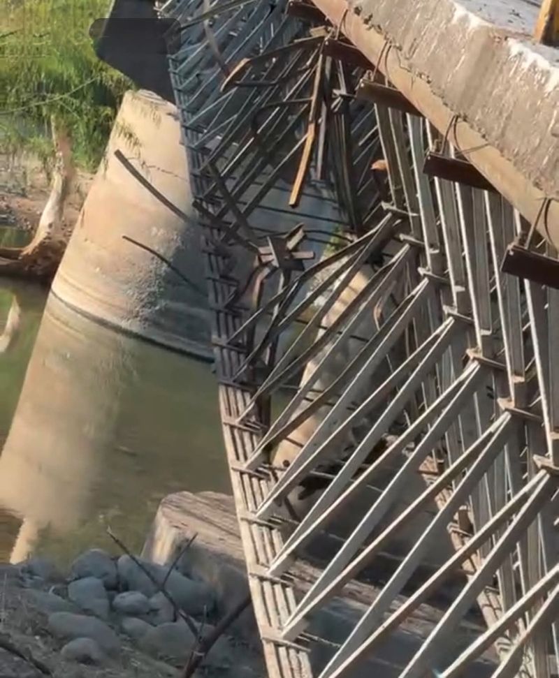 Por el momento, la gente cruza o en moto un puente que quedó completamente dañado en su estructura y en el que se ya se prohibió la circulación de autos, camionetas y todo tipo de vehículos pesados. Ni los camiones pequeños ni las vans para distribuir víveres pueden circular por el puente.