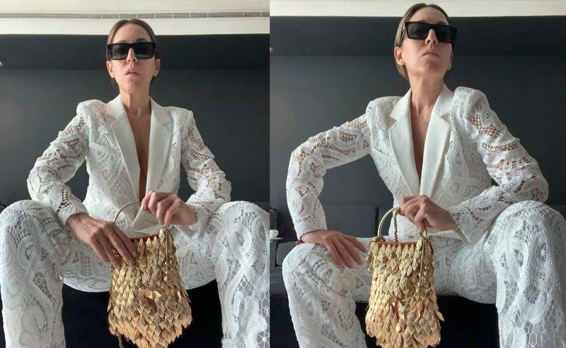 A través de su cuenta de Instagram, la actriz de 55 años publicó un par de fotografías con la descripción “jueves casual”, en las que aparece con un conjunto en color blanco de encaje y una bolsa en color dorado que combinó a la perfección con su pelo rubio.