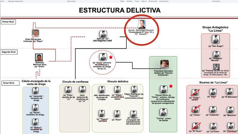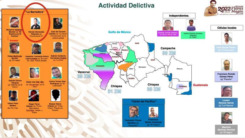 En el primero, con fecha de 12 de noviembre de 2019, se vinculaba a Bermúdez Requena, en ese entonces Director de la Policía de Investigación estatal, con Trinidad Alberto de la Cruz Miranda, alias ‘El Pelón de Playas’, líder de MM de 2021. Además, el CERFI Sureste emitió una alerta más en la ya que se documentaba la presunta corrupción de Hernán Bermúdez. Una tarjeta dirigida a los altos mandos de la Secretaría de la Defensa advertía lo siguiente: