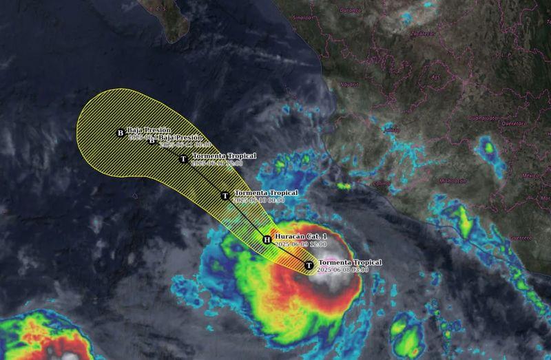 El centro del ciclón se encontraba la madrugada del lunes a 295 km al suroeste de Manzanillo, Colima, y a 310 km de al sur de Playa Pérula, Jalisco.