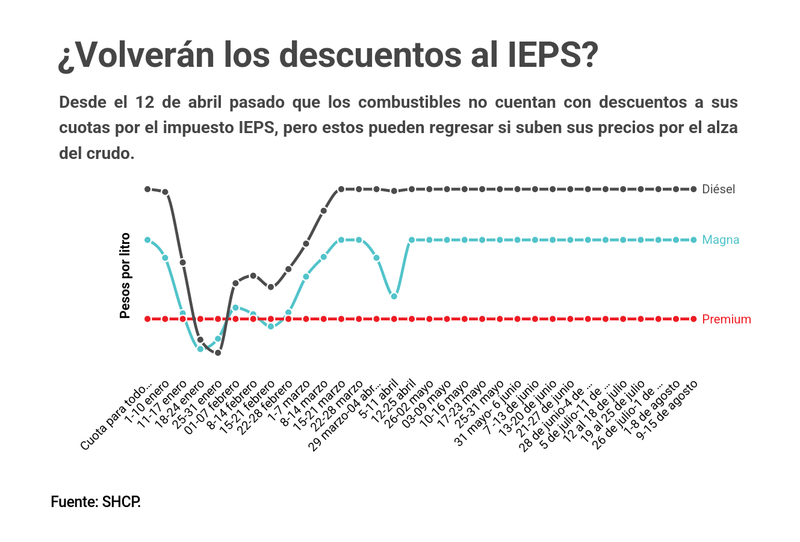 La Secretaría de Hacienda y Crédito Público (SHCP) no otorgará estímulos fiscales o reducciones a las cuotas por el Impuesto Especial sobre Producción y Servicios (IEPS) que cobra a las gasolinas y diésel.