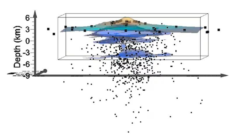 Este método, explican los estudiosos, les permitió detectar que algunas de las estructuras interconectadas que hay en el interior del volcán, podrían estar funcionando como posibles regiones de acumulación de magma o conductos de ascenso.