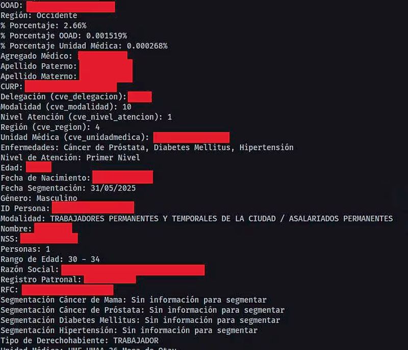 “Se filtran padecimientos médicos, nombres, CURP, fechas de nacimiento y, básicamente, es como un coctel de información para poder realizar fraude y datos de extorsión, incluso. Entonces, es sumamente grave. Por ejemplo, el tipo de sangre, incluso, para cuestión de tráfico de órganos”.
