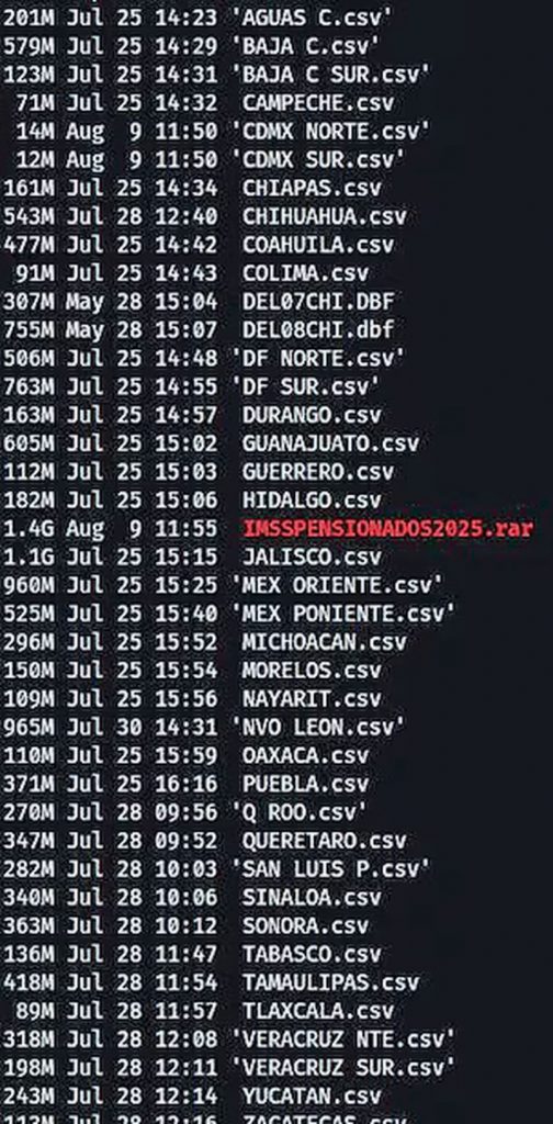 Por su parte, Manuel Rivera, de NEKT Group, explicó que su área de Inteligencia de Amenazas confirmó que la base de datos de pensionados del IMSS se encuentra a la venta en la dark web y que fue vulnerada desde el mes pasado. “La fecha a partir de la cual se ofrece es el 9 de agosto, y es una base de datos de 1.4 gigabytes, que por el tamaño perfectamente puede representar 20 millones de registros”.