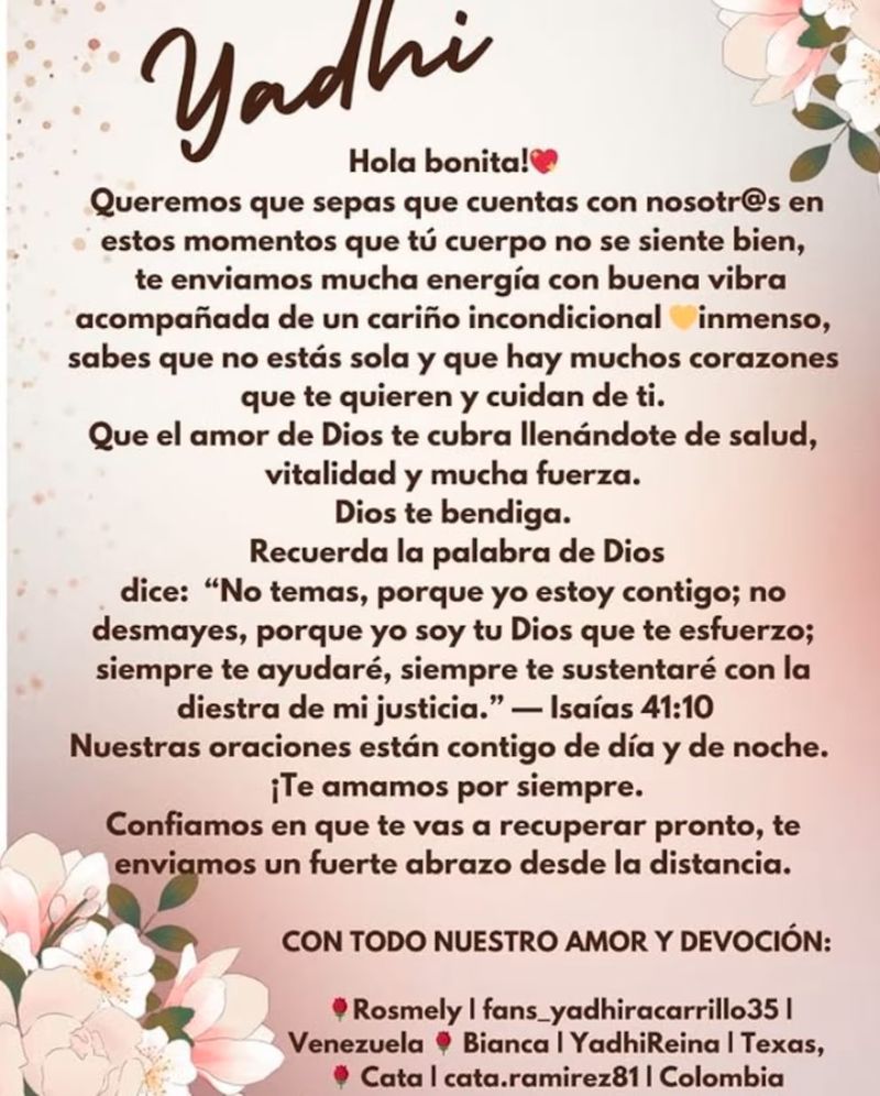 A través de su cuenta de Instagram, Carrillo ha compartido imágenes que recogen las muestras de apoyo recibidas de sus seguidores durante estos días en el hospital, reflejando el respaldo que mantiene a pesar de la distancia.
